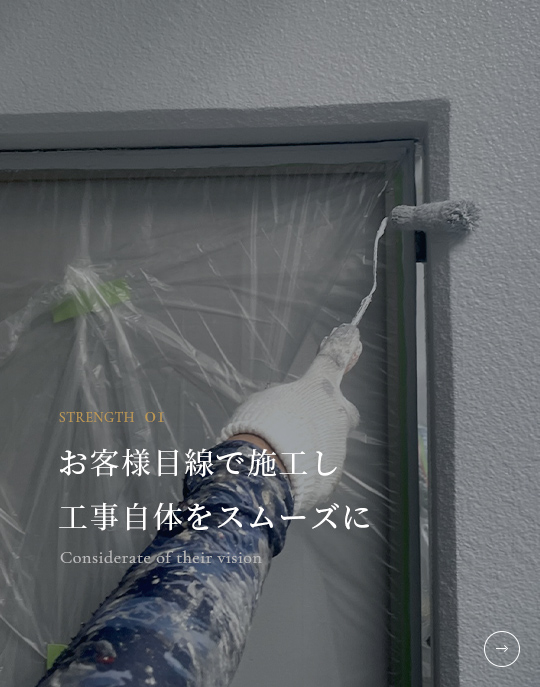 足場・塗装・防水・内装・リペアまで、住まいの工事をワンストップで対応。各分野の職人がチームで連携し、高品質な仕上がりをお届けします。